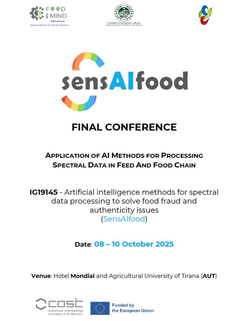 Maxime Istasse participera à la conférence internationale du projet SensAIfood, qui se tiendra du 8 au 10 octobre 2025 à l’Université agricole de Tirana, en Albanie. Cet événement marque l’aboutissement de plusieurs années de recherche et de collaboration consacrées à l’application de l’intelligence artificielle et de capteurs spectraux non destructifs pour le contrôle de la qualité, l’authentification et la durabilité des aliments tout au long de la chaîne de valeur.