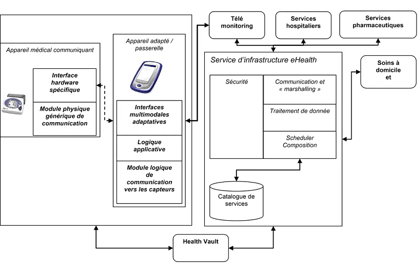 Dans le cadre de l’Objectif de Convergence de la Région wallonne le CETIC et ses partenaires ont démarré en juillet 2009 un projet de recherche d’une durée de 3 ans visant à implémenter une plateforme intégrée innovante de composition intelligente et dynamique de services eHealth. Cette démarche vise à apporter une réponse efficace au problème de la prise en charge et du suivi coordonnés et sécurisés des patients à domicile. Au sein de ce projet, 4 activités principales ont été identifiées : le design d’interfaces utilisateurs ergonomiques et adaptatives, la composition dynamique de services électroniques, la communication électronique des données enregistrées par les appareils médicaux et l’interopérabilité et l’échange de données avec les systèmes d’information existants et à venir.