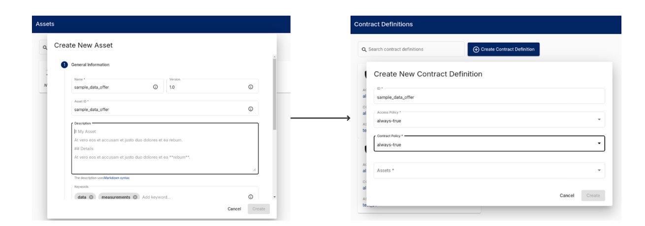 The process of offering data in a Data Space consists of two key steps: data asset creation, and contract definition (figure 2).