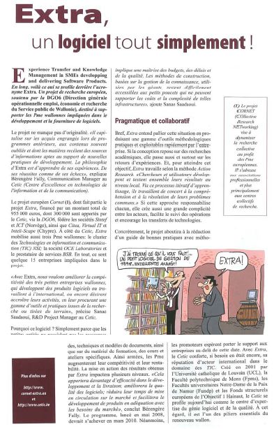 nyme EXTRA. Un projet de recherche européen, soutenu par la DGO6 (Direction générale opérationnelle emploi, économie et recherche du Service public de Wallonie), destiné à supporter les Pme wallonnes impliquées dans le développement et la fourniture de logiciels.