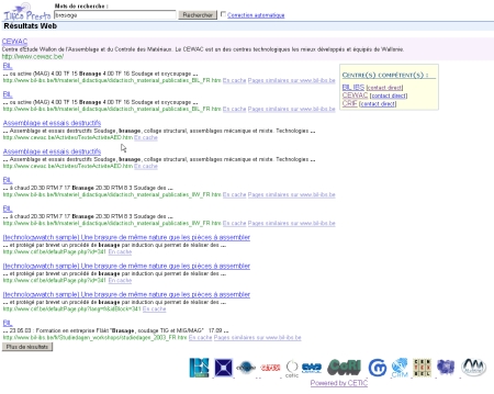 Because the major search engines provide information at a worldwide level, it is often not easy to get an inventory of local skills or "near-to-you" competence. Initiated by Agoria and implemented at CETIC, Illico Presto is a search engine focused on Walloon innovation and technologies.