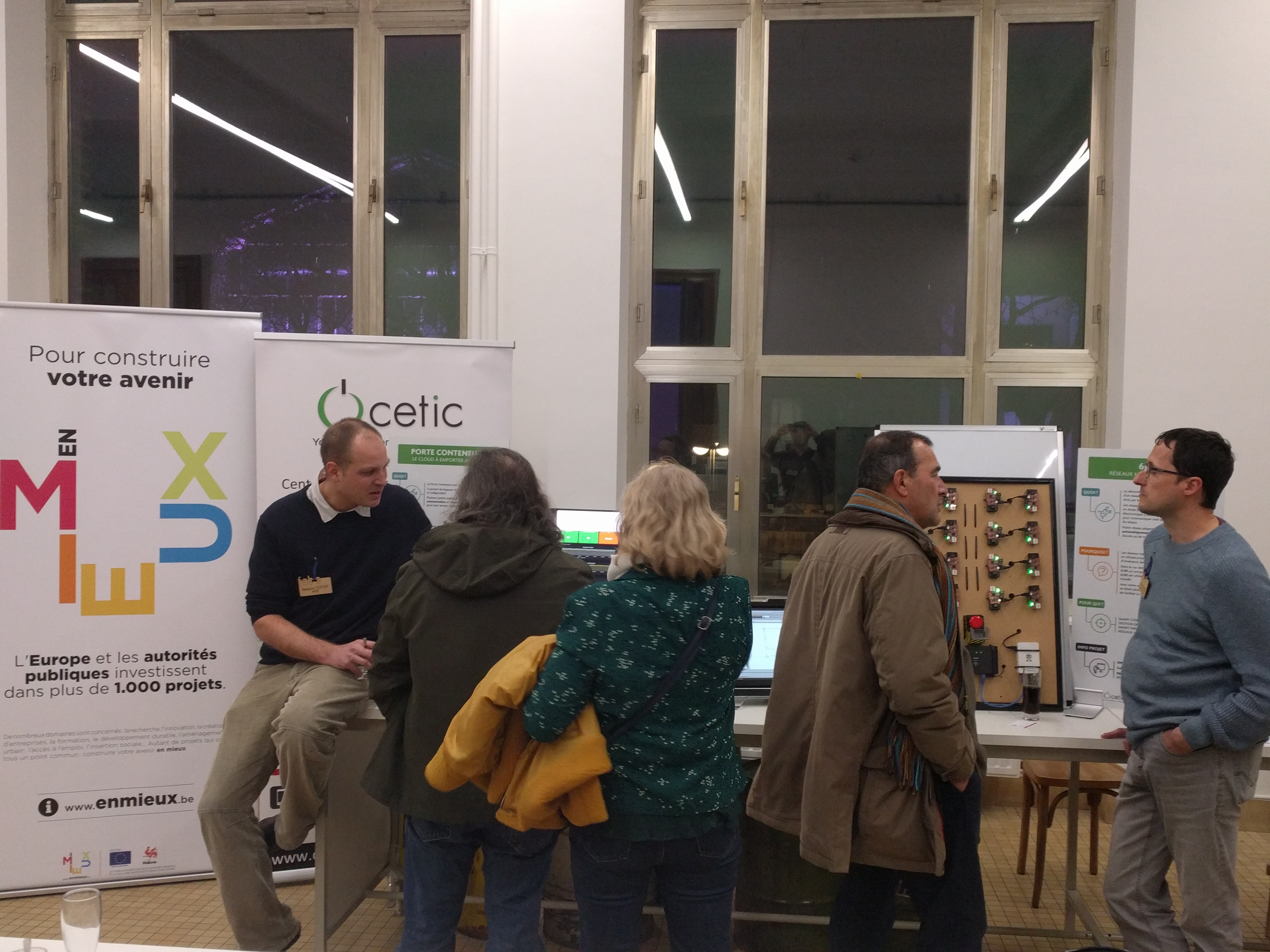 Démonstration du CETIC lors de l’inauguration du Fab-C : Capteurs IoT et un micro datacenter (porte conteneurs).