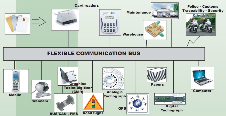 Various embedded equipments are becoming more and more numerous inside transport vehicles. Apart from mandatory devices such as the digital tachograph, different other equipments are available such as radio communication systems (GSM / GPRS), localisation devices (GPS), and a variety of miscellaneous tools and equipments for specific needs (data loggers, PC tablet, cameras, mobile phones, On-board computers, etc.).
