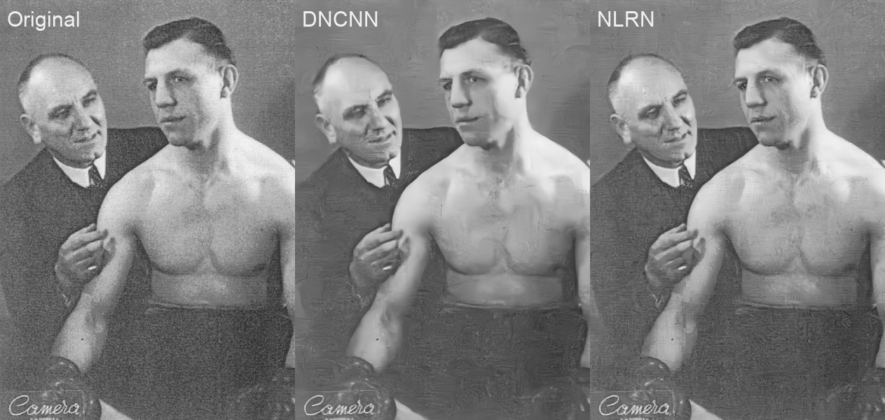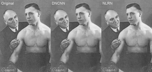 Dans le cadre du projet DigiMIR, projet FEDER mené en collaboration entre le CETIC et Numediart, nous avons sélectionné, testé et comparé certaines de ces techniques, dans l’optique de développer un outil générique et innovant de restauration d’image. En effet, les techniques de l’état de l’art proposées dans la littérature scientifique se cantonnent en général à un aspect bien précis de l’image à restaurer/améliorer, et leur mise en commun est un réel challenge. Par exemple, la réduction de bruit peut améliorer la texture de différentes surfaces, comme celle d’un gazon, ce qui peut améliorer les résultats d’un algorithme de colorisation. Plus l’image est compréhensible, mieux l’algorithme fonctionnera ! A contrario, une image trop bruitée, ou trop lissée par un algorithme de “débruitage” mal exécuté empêchera de reconnaître la texture du gazon, qui sera alors colorié de manière grisâtre, tel un béton. Un autre exemple typique est la super-résolution d’image, qui peut dans certains cas augmenter de manière réaliste les détails d’une texture, ou dans d’autres cas augmenter le bruit ou les artefacts générés par un algorithme de traitement mal exécuté.